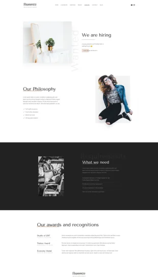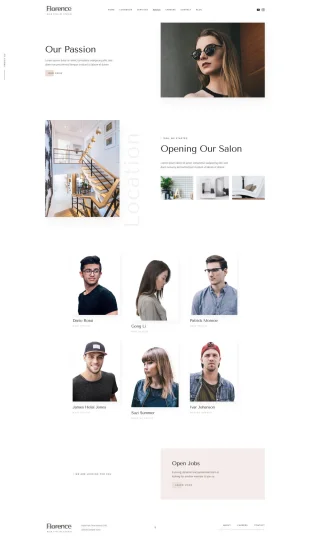 Template Joomla Florence dari YOOtheme Pro sangat cocok untuk digunakan pada situs web salon rambut dan kecantikan serta situs web mode.
