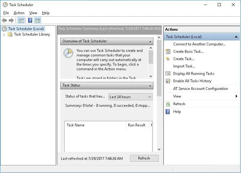 Jika Anda ingin mengakses Task Scheduler di Windows 10, cukup ketik "scheduler" atau "Task Scheduler" di kotak pencarian Cortana, dan Anda akan menemukan program scheduler tersebut. Perhatikan bahwa bahkan Windows dan berbagai program yang diinstal (seperti Google Chrome) membuat tugas yang dijadwalkan untuk melakukan aktivitas pemeliharaan mereka sendiri, jadi jangan mengedit atau menonaktifkan tugas-tugas lain.